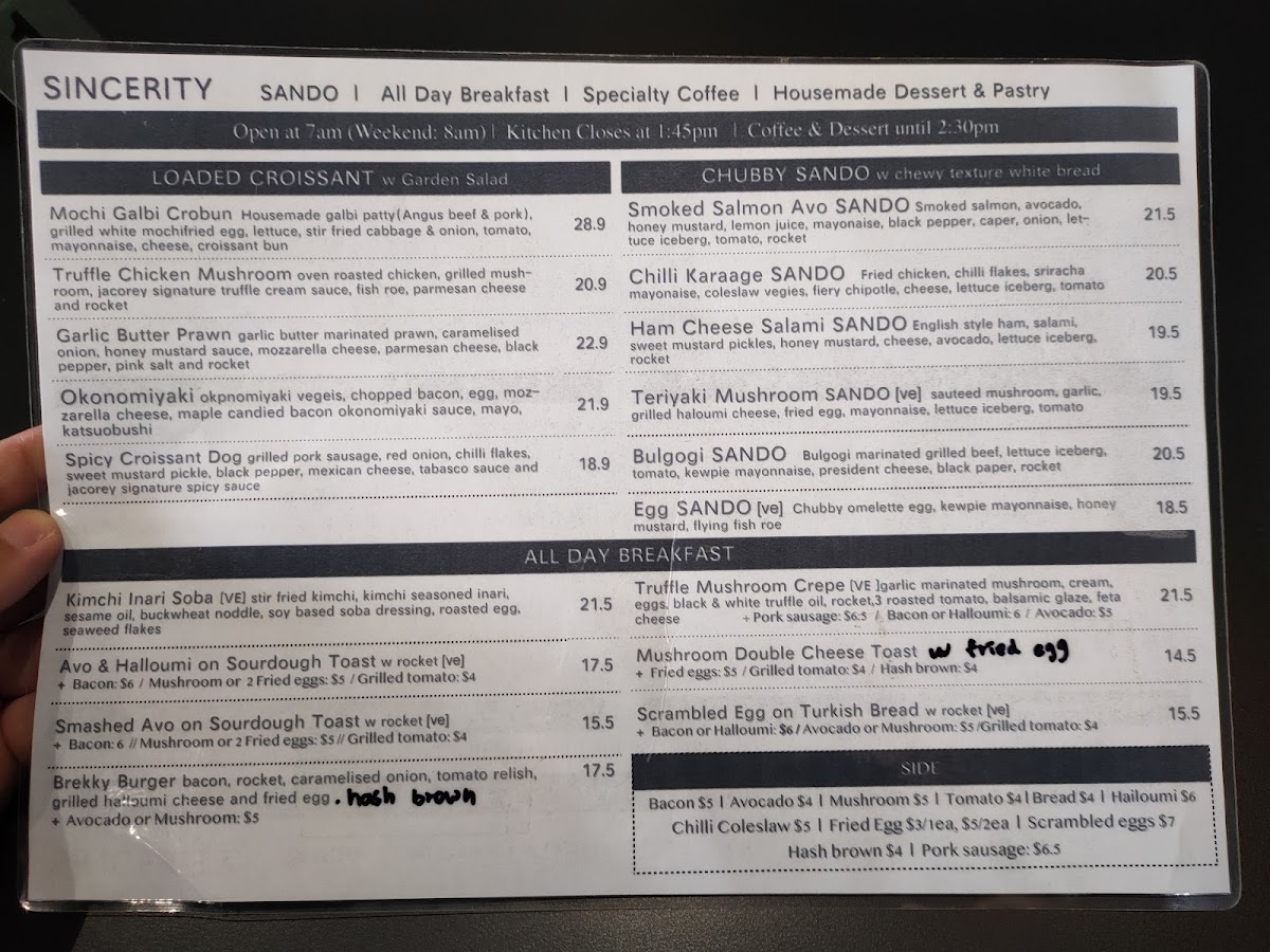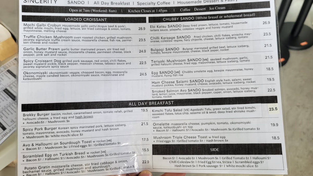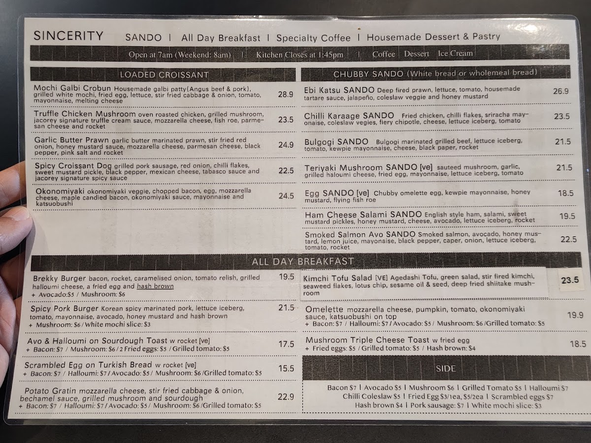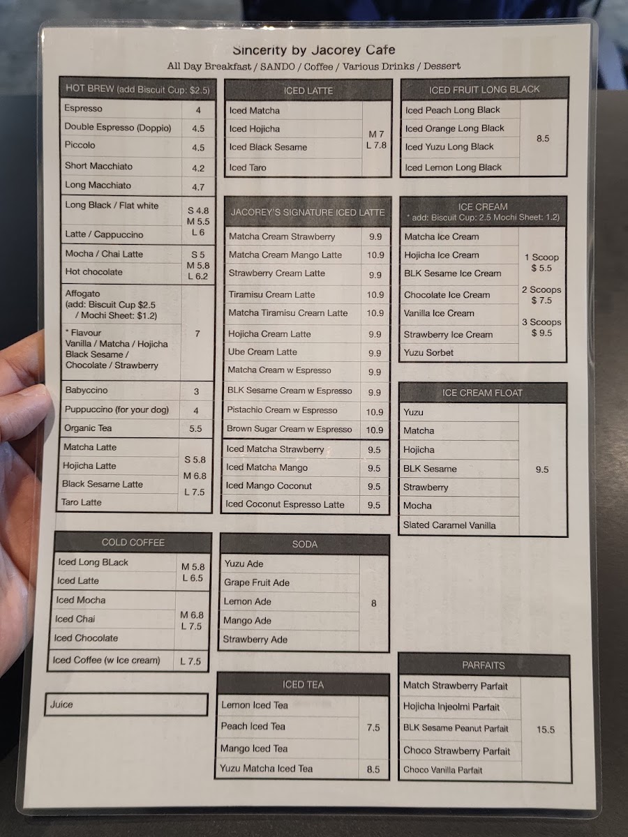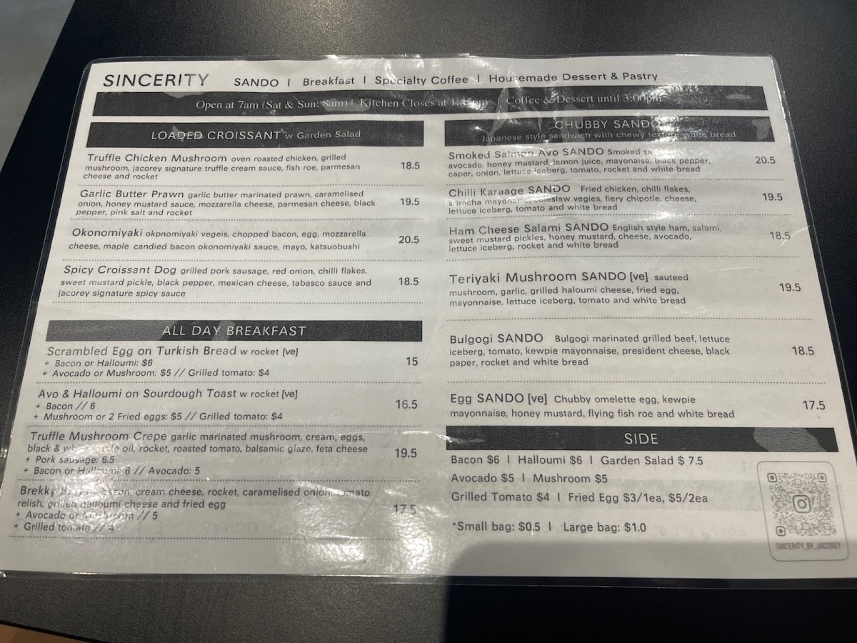 Sincerity Bake & Brew presents a delectable selection of beverages and treats that elevate your café experience. The menu features enticing items such as Ice Cream Floats—choose from refreshing flavors like Yuzu, Matcha, and Hojicha, all priced at A$9.50. For those with a sweet tooth, the Parfaits are a must-try. Indulge in the Match Strawberry Parfait or the uniquely flavored Blk Sesame Peanut Parfait, each priced at A$15.50, providing a perfect blend of textures and flavors.